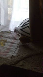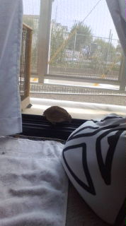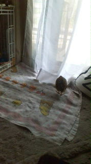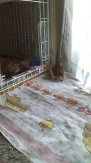 ケージと窓のエリアにバスタオルをセット♪